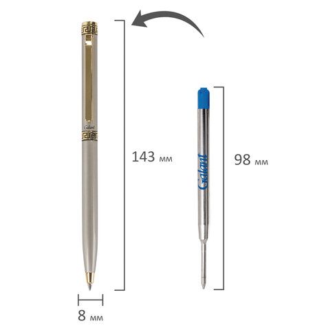 Ручка подарочная шариковая GALANT "Brigitte", тонкий корпус, серебристый, золотистые детали, пишущий узел 0,7 мм, синяя, 141009