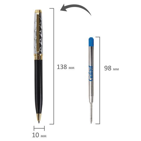 Ручка подарочная шариковая GALANT "Consul", корпус черный с серебристым, золотистые детали, пишущий узел 0,7 мм, синяя, 140963