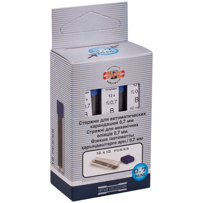 Грифели для механических карандашей Koh-I-Noor "4162", 12шт., 0,7мм, B