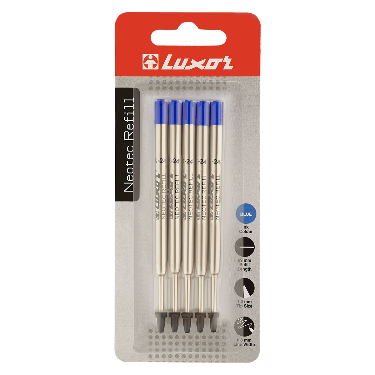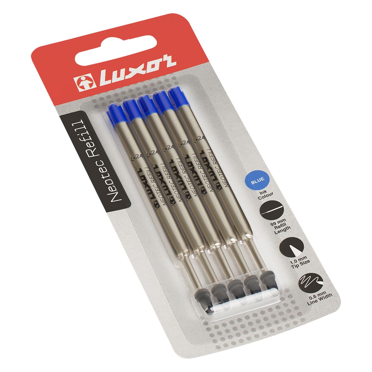 Набор стержней шариковых объемных Luxor, 5шт., синие, 99мм, 1,0мм, метал. корпус, блистер