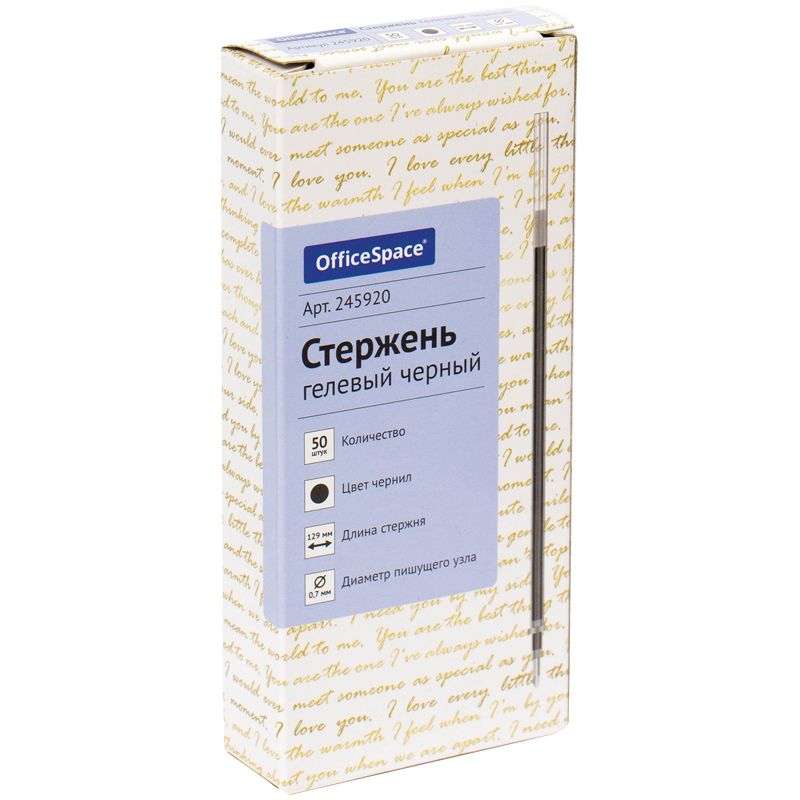 Стержень гелевый OfficeSpace черный, 129мм, 0,7мм