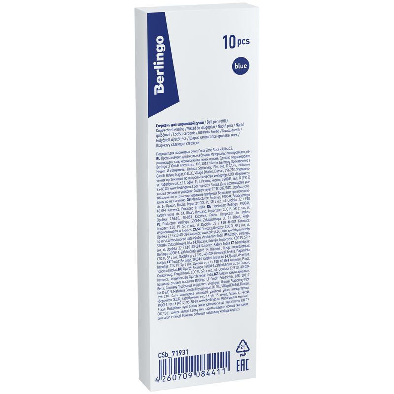 Стержень шариковый Berlingo "Color Zone stick", "Ultra" синий, 0,7мм, длина письма 2500м, пакет