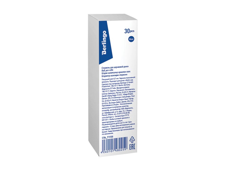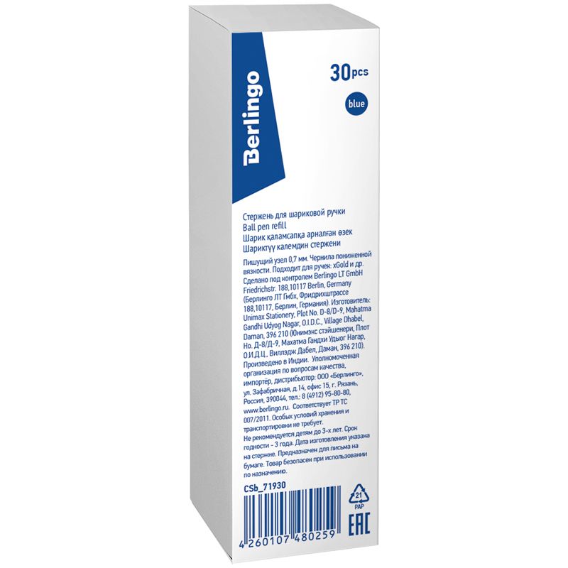 Стержень шариковый Berlingo "xGold", "SG-1" синий, 139мм, 0,7мм