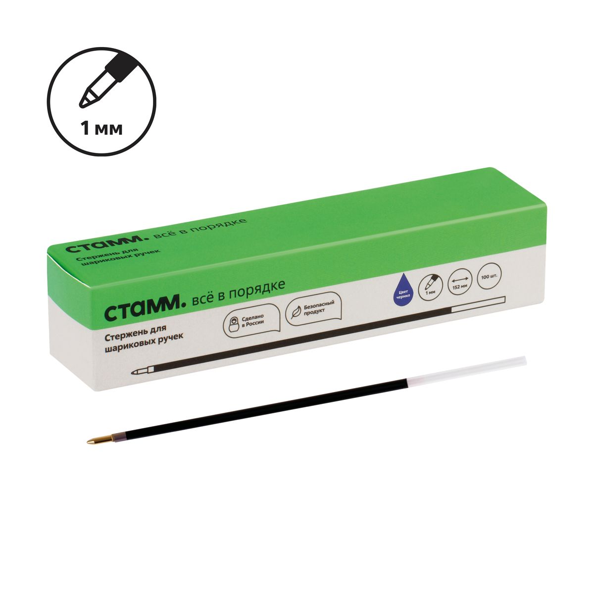 Стержень шариковый СТАММ синий, 152мм, 1,0мм