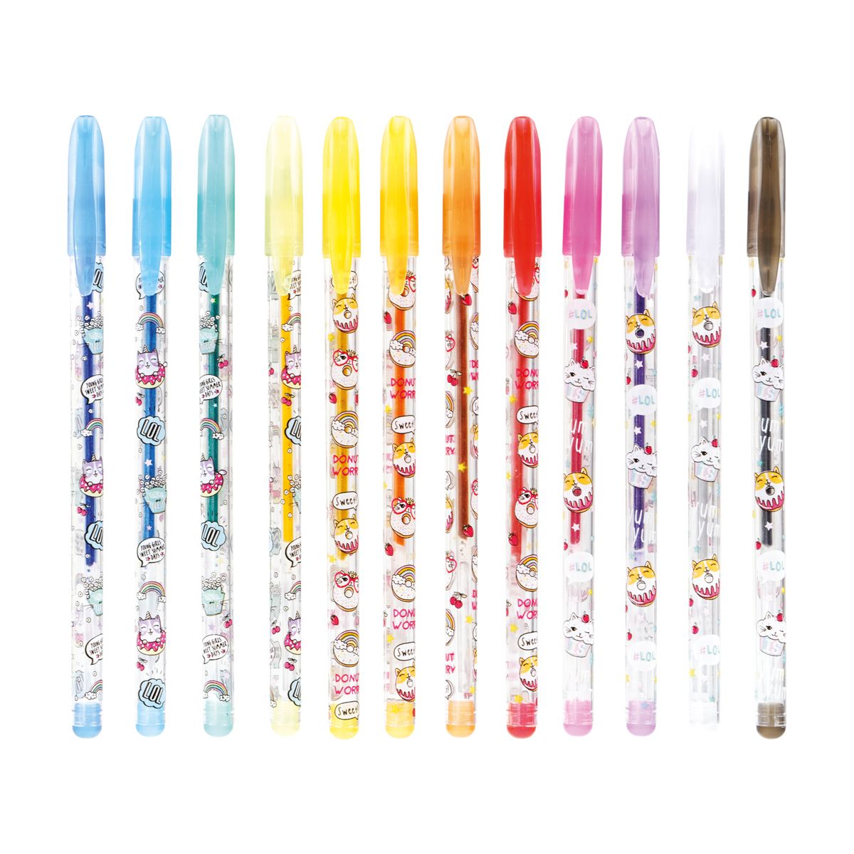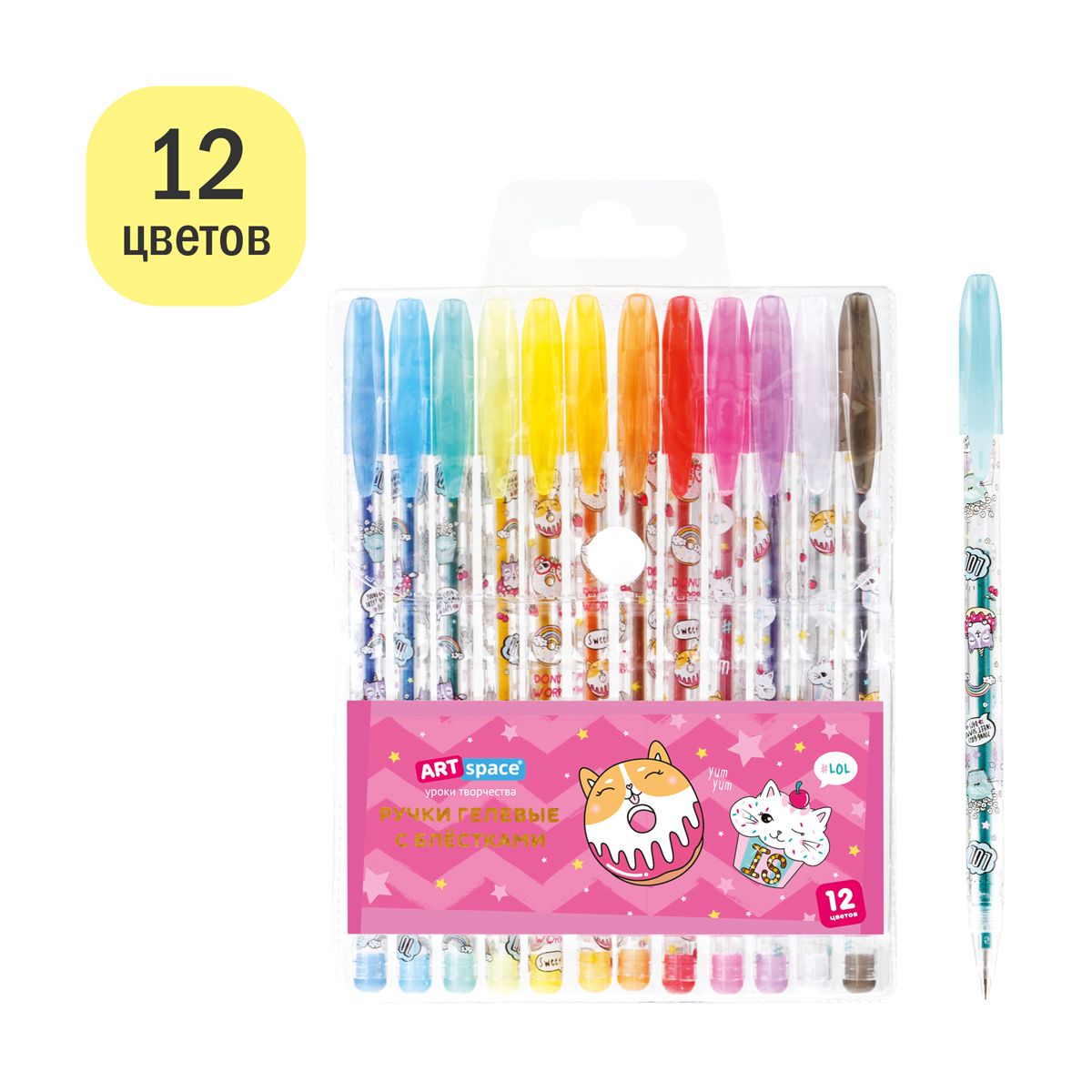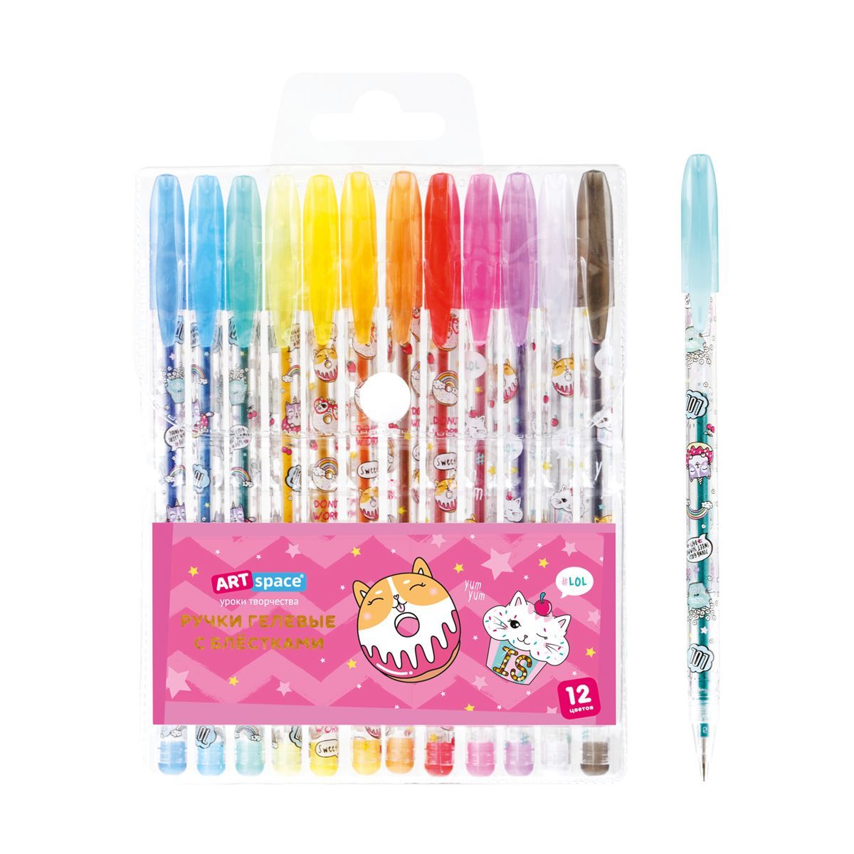 Набор гелевых ручек ArtSpace "Кот-сластена" 12цв., 1,0мм, с блестками, ПВХ чехол