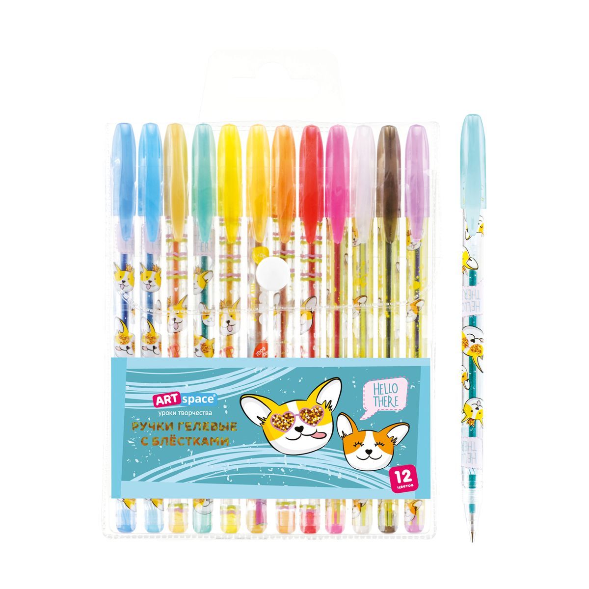 Набор гелевых ручек ArtSpace "Милые зверушки" 12цв., 1,0мм, с блестками, ПВХ чехол