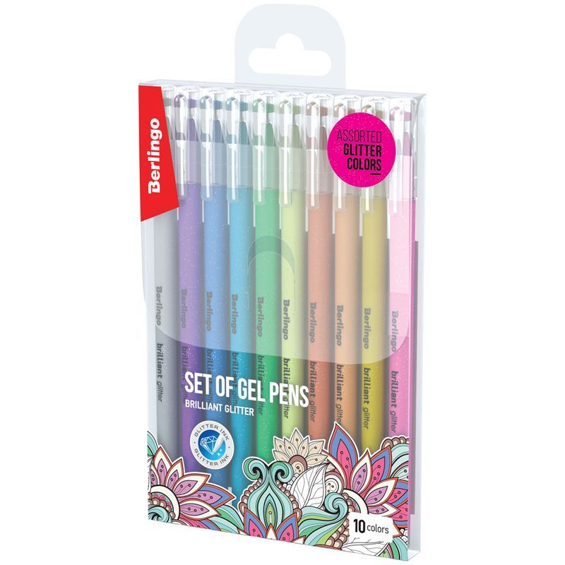 Набор гелевых ручек Berlingo "Brilliant Glitter" 10шт., 10цв., 1,0мм, корпус ассорти