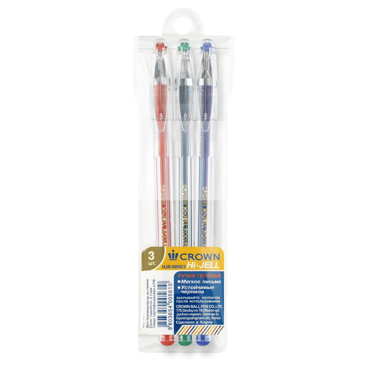 Набор гелевых ручек Crown "Hi-Jell" 3шт., 03цв., 0,5мм, ПВХ уп., европодвес
