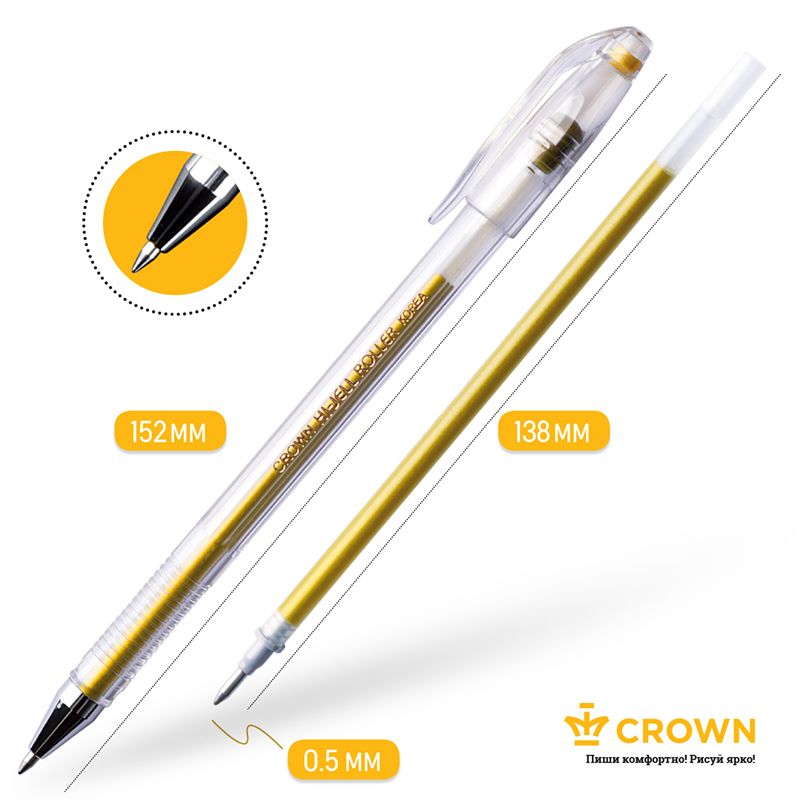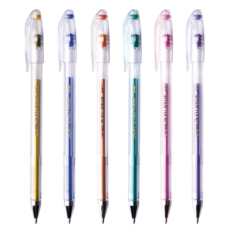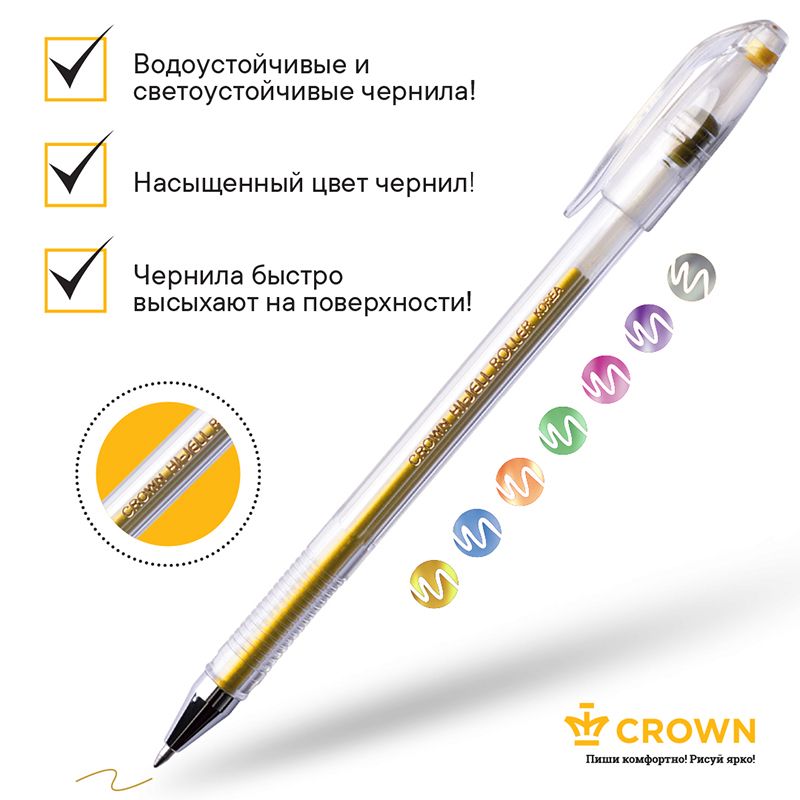 Набор гелевых ручек Crown "Hi-Jell Metallic" 6шт., 06цв., 0,7мм, металлик, ПВХ уп., европодвес