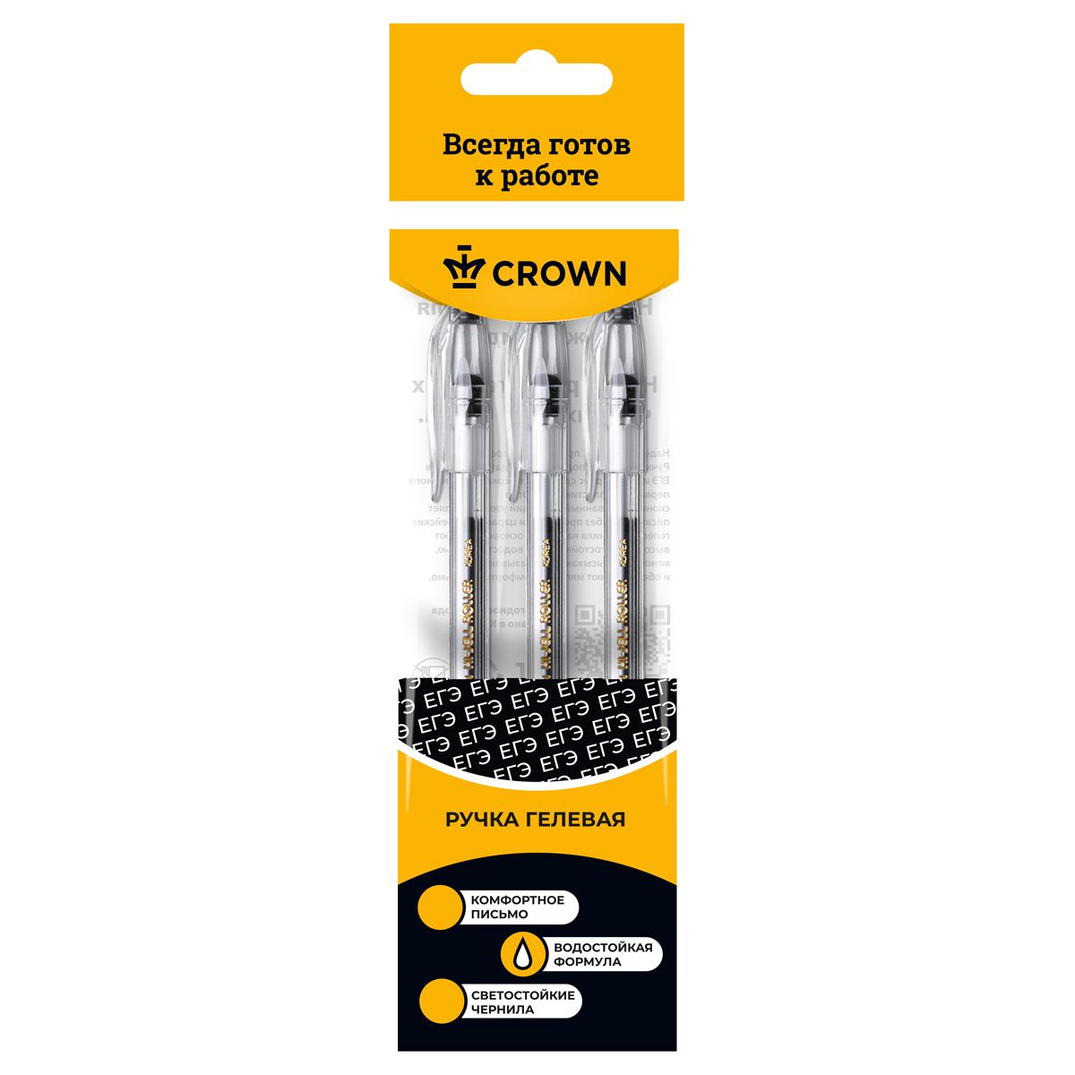 Набор гелевых ручек для ЕГЭ Crown "Hi-Jell" 3шт., черные, 0,5мм, европодвес