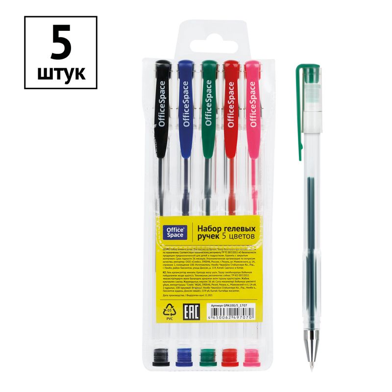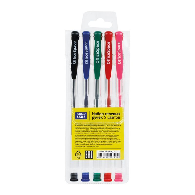 Набор гелевых ручек OfficeSpace 05цв., 1,0мм, европодвес