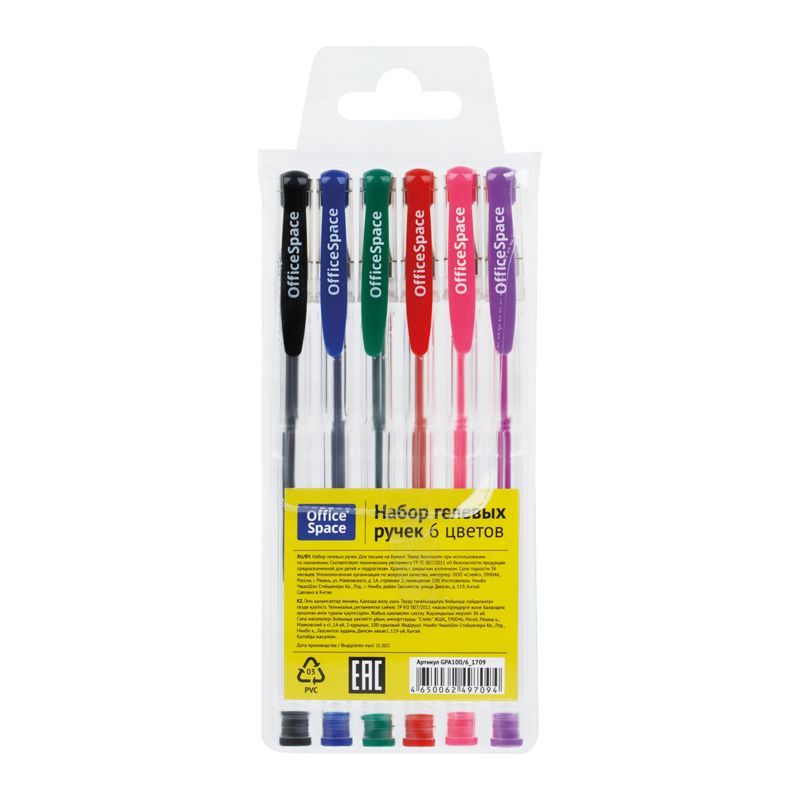 Набор гелевых ручек OfficeSpace 06цв., 1,0мм, европодвес