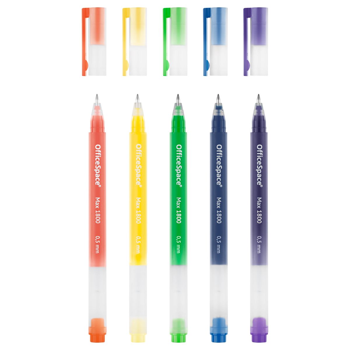 Набор гелевых ручек OfficeSpace "Max 1800", 5шт., 5цв,0,5мм, бесстержневая, увеличенная длина письма, коробка