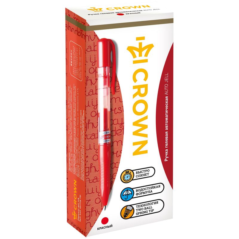 Ручка гелевая автоматическая Crown "Auto Jell" красная, 0,7мм