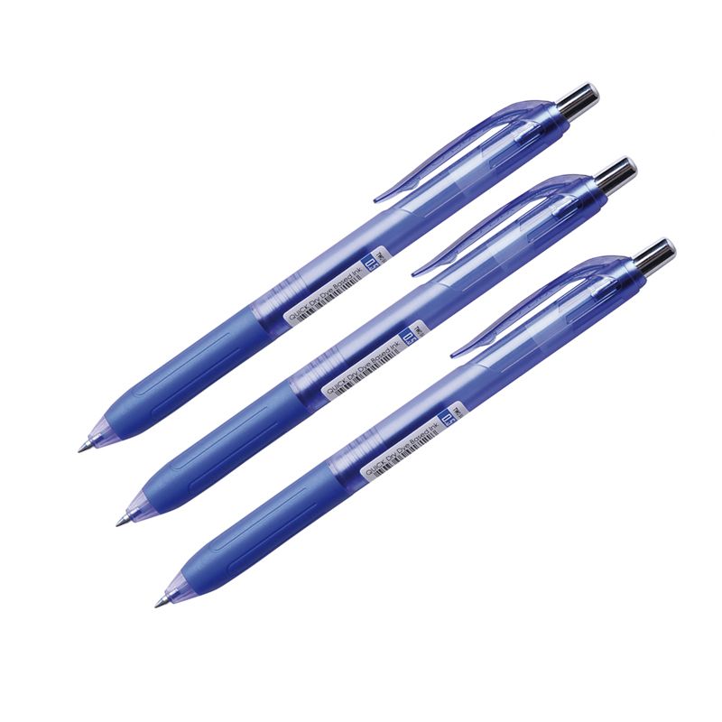 Ручка гелевая автоматическая Crown "Quick Dry" синяя, 0,5мм, грип, гибридные чернила (3 шт.)