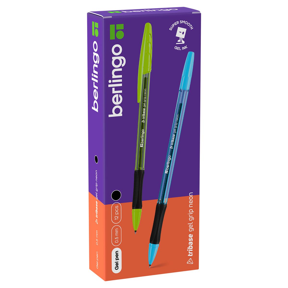 Ручка гелевая Berlingo "Tribase Gel grip neon" черная, 0,5мм, грип