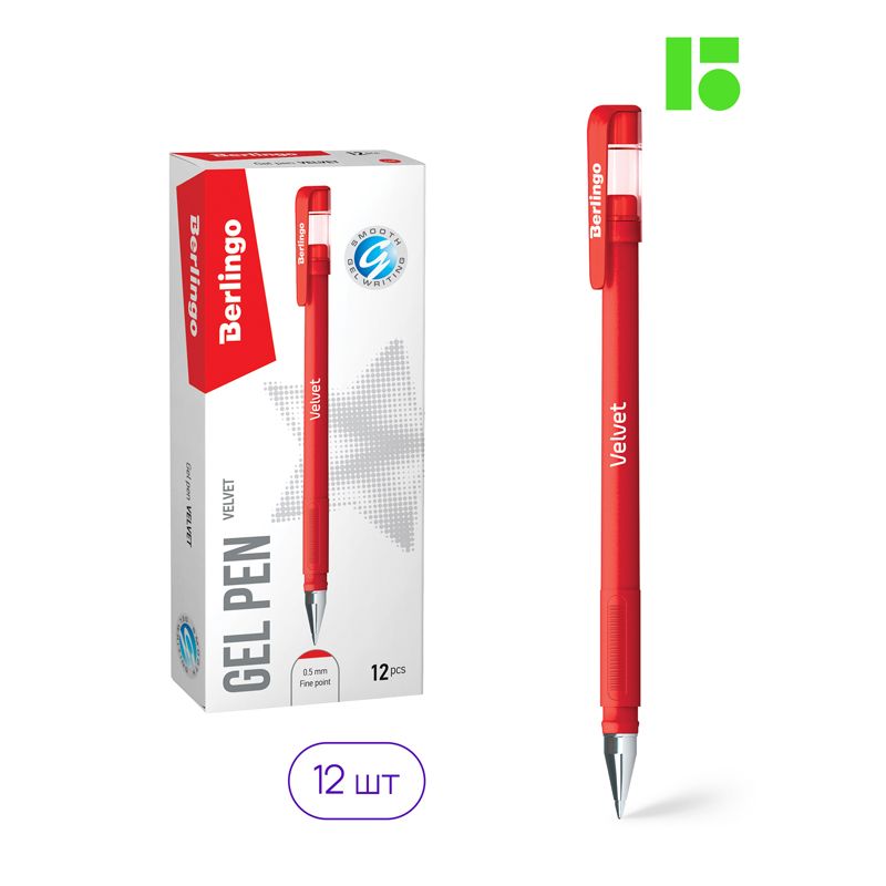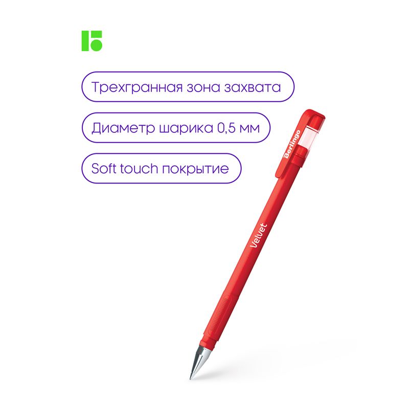 Ручка гелевая Berlingo "Velvet" красная, 0,5мм, прорезиненный корпус