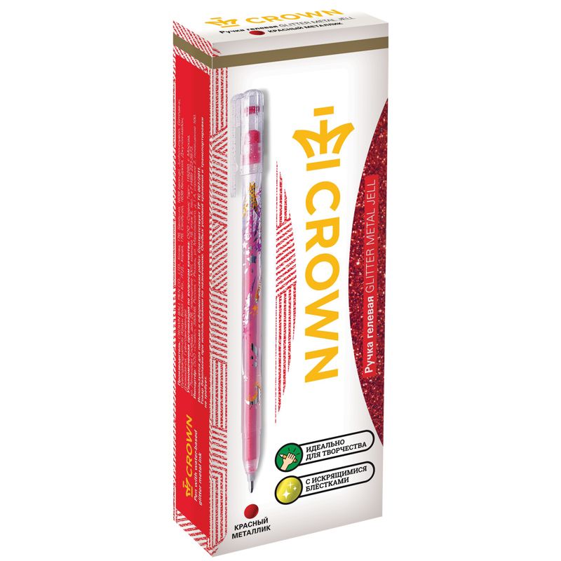 Ручка гелевая Crown "Glitter Metal Jell" красная с блестками, 1,0мм