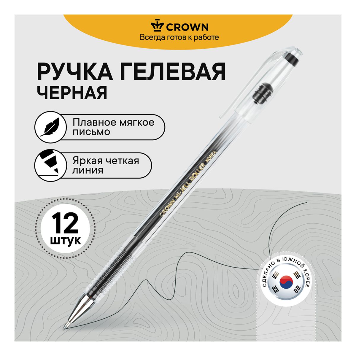 Ручка гелевая Crown "Hi-Jell" черная, 0,5мм, штрих-код