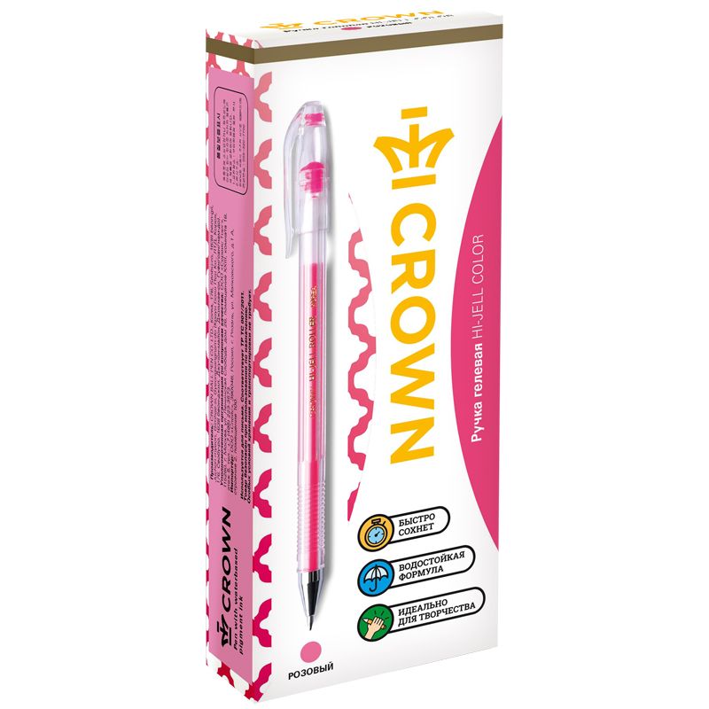 Ручка гелевая Crown "Hi-Jell Color" розовая, 0,7мм