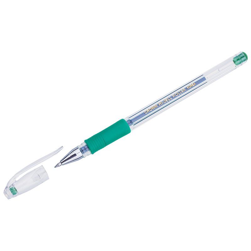 Ручка гелевая Crown "Hi-Jell Grip" зеленая, 0,5мм, грип