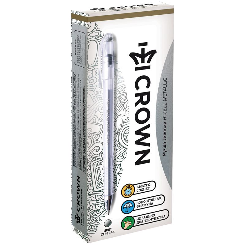 Ручка гелевая Crown "Hi-Jell Metallic" серебро металлик, 0,7мм