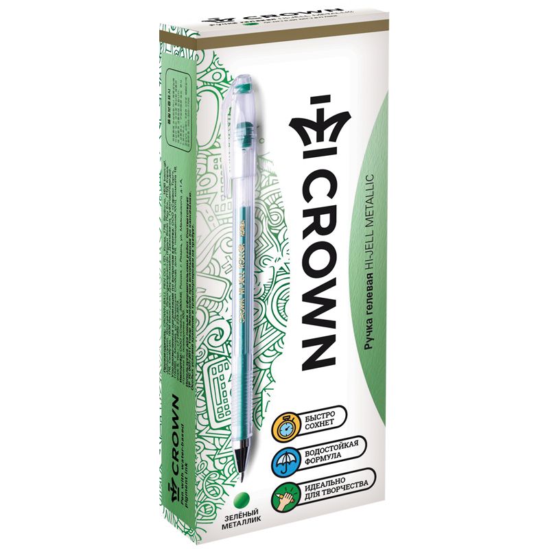 Ручка гелевая Crown "Hi-Jell Metallic" зеленая металлик, 0,7мм