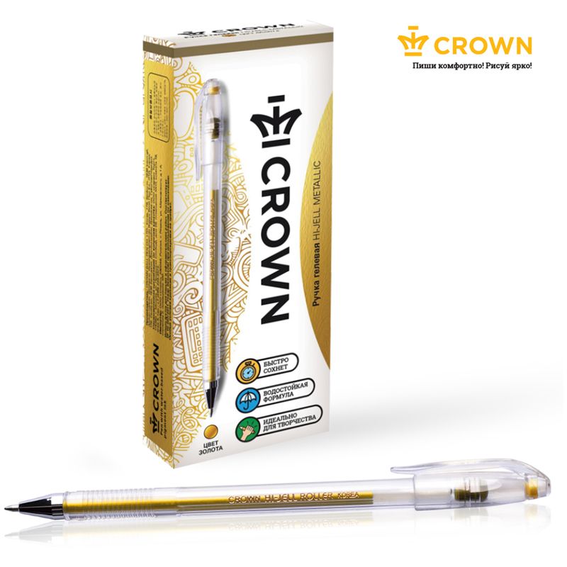 Цвет чернил - золото металлик, диаметр пишущего узла - 0,7 мм. Упаковка: картонная коробка по 12 штук. Пиши комфортно и рисуй ярко вместе с гелевыми ручками Crown!