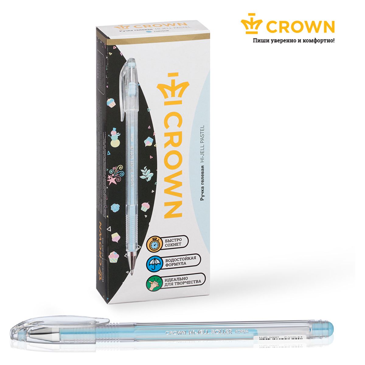 Ручка гелевая Crown "Hi-Jell Pastel" голубая пастель, 0,8мм