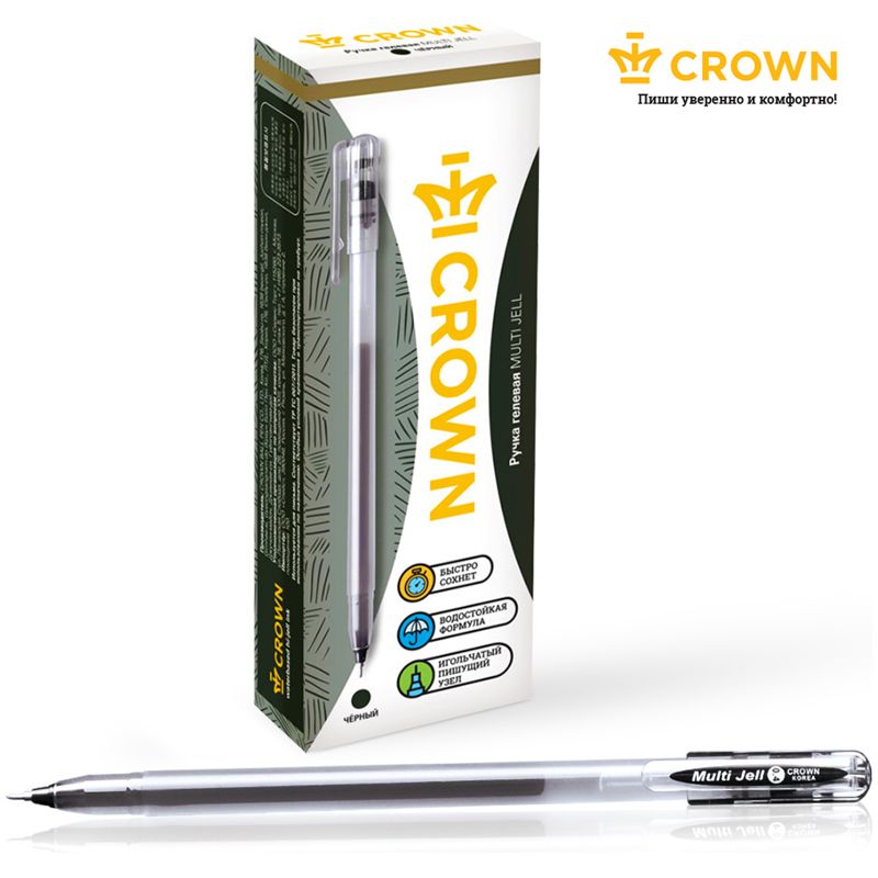 Ручка гелевая Crown "Multi Jell" черная, 0,4мм, игольчатый стержень
