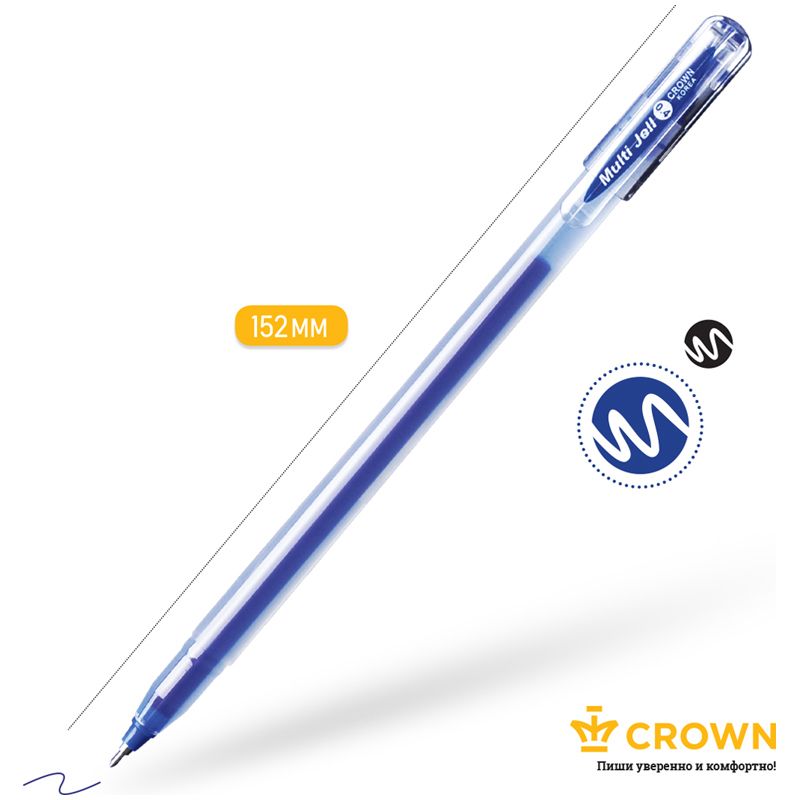 Ручка гелевая Crown "Multi Jell" синяя, 0,4мм, игольчатый стержень