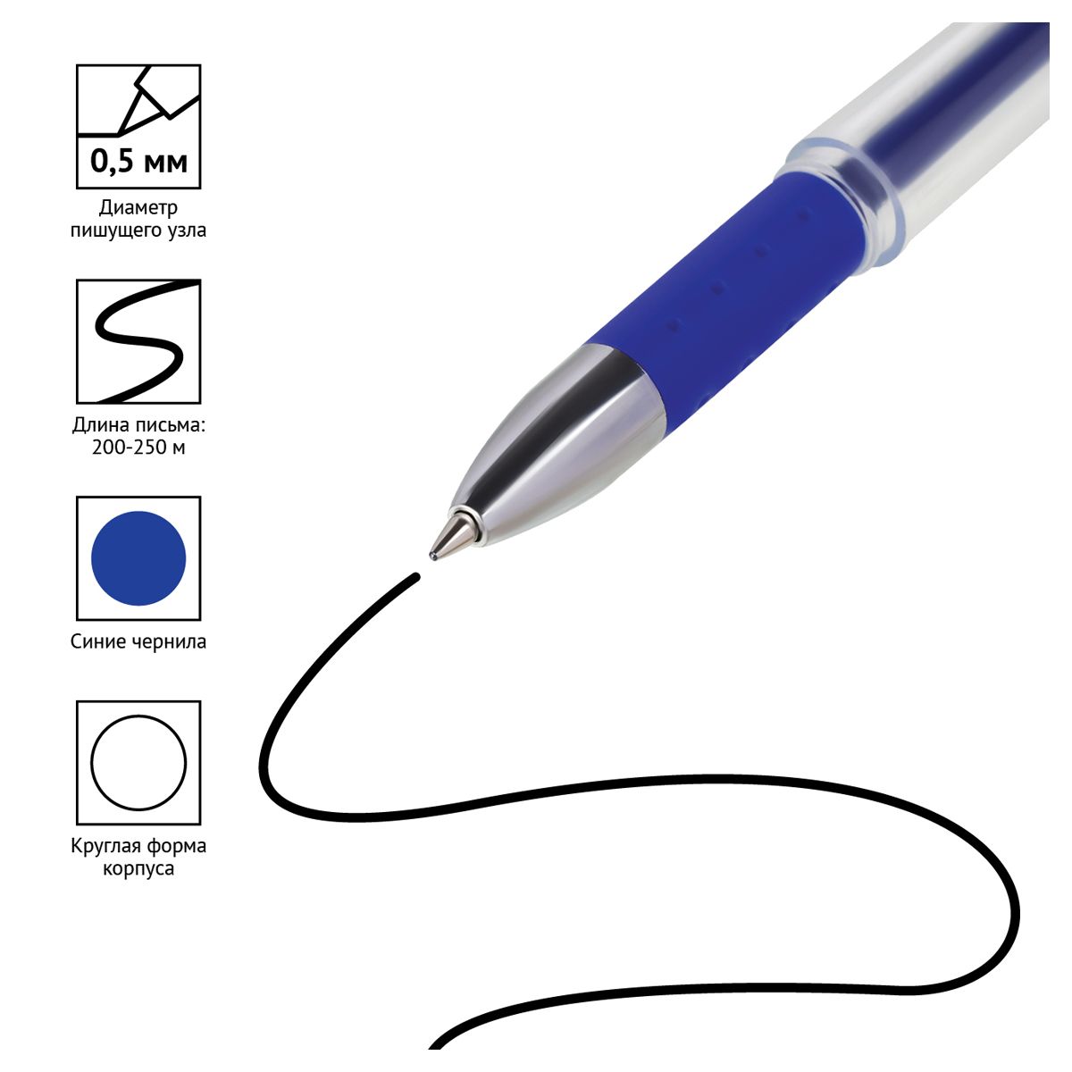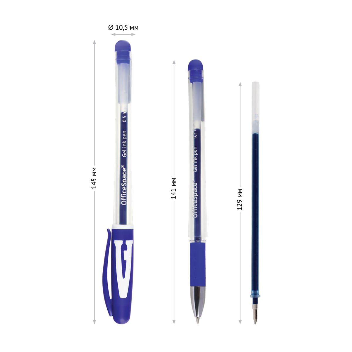 Ручка гелевая OfficeSpace "A-Gel" синяя, 0,5мм, грип