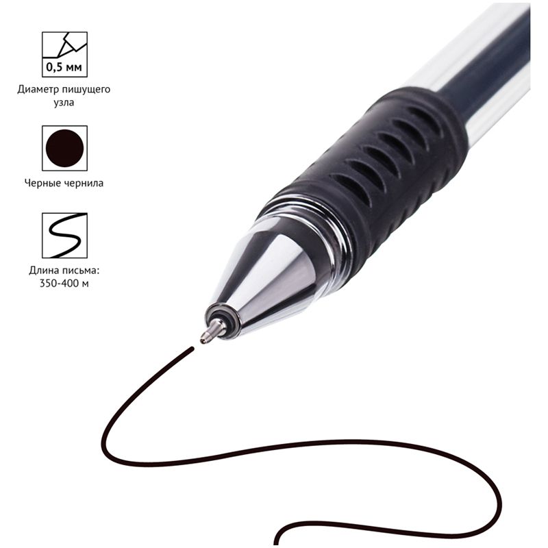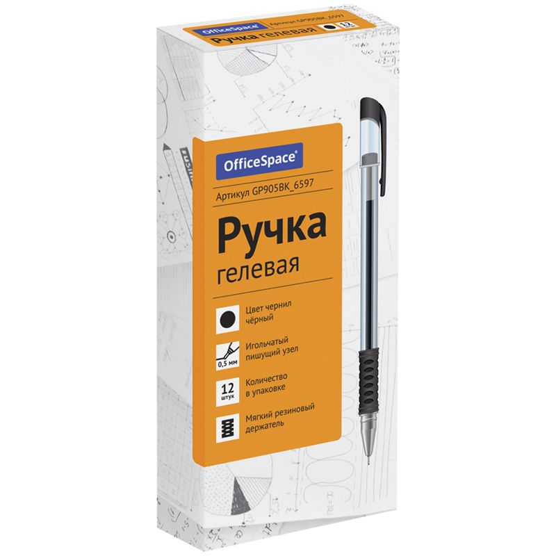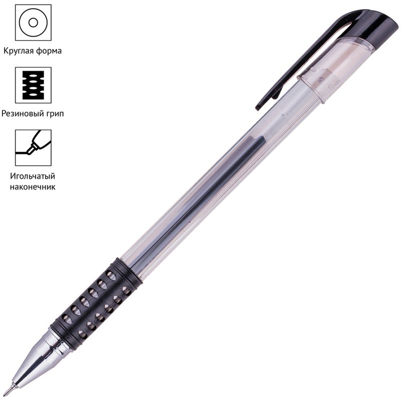 Ручка гелевая OfficeSpace черная, 0,5мм, грип, игольчатый стержень