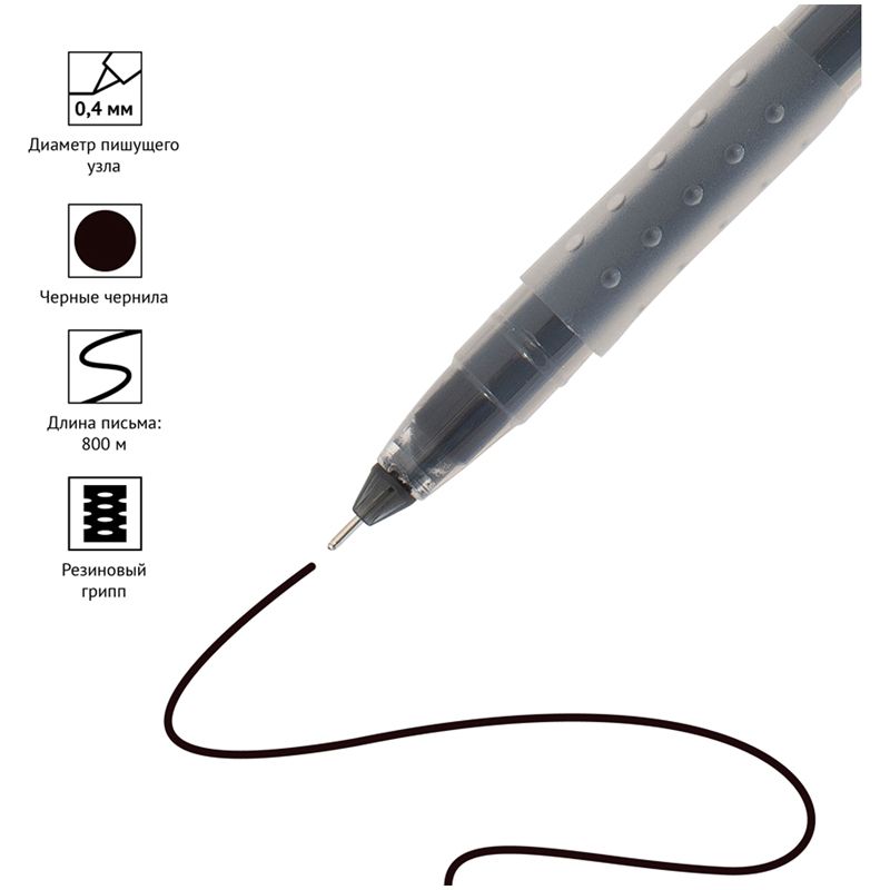 Ручка гелевая OfficeSpace "HC-1" черная, 0,4мм, бесстержневая, игольчатый наконечник