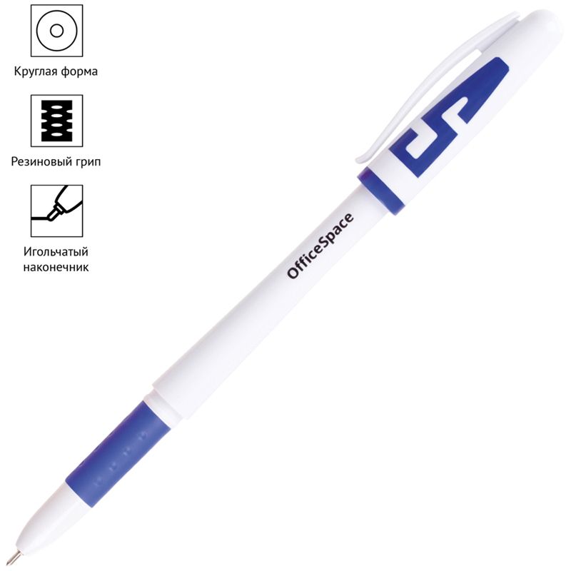 Ручка гелевая OfficeSpace синяя, 0,6мм, грип, игольчатый стержень