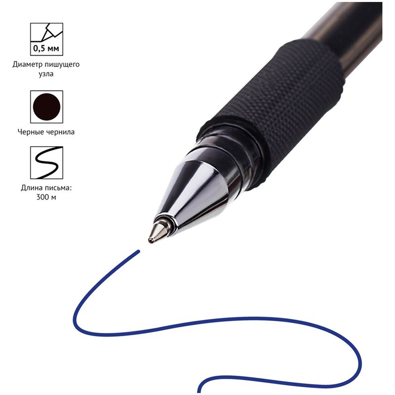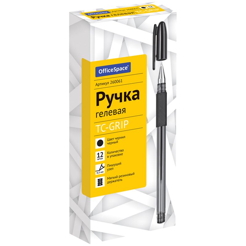 Ручка гелевая OfficeSpace "TC-Grip" черная, 0,5мм, грип