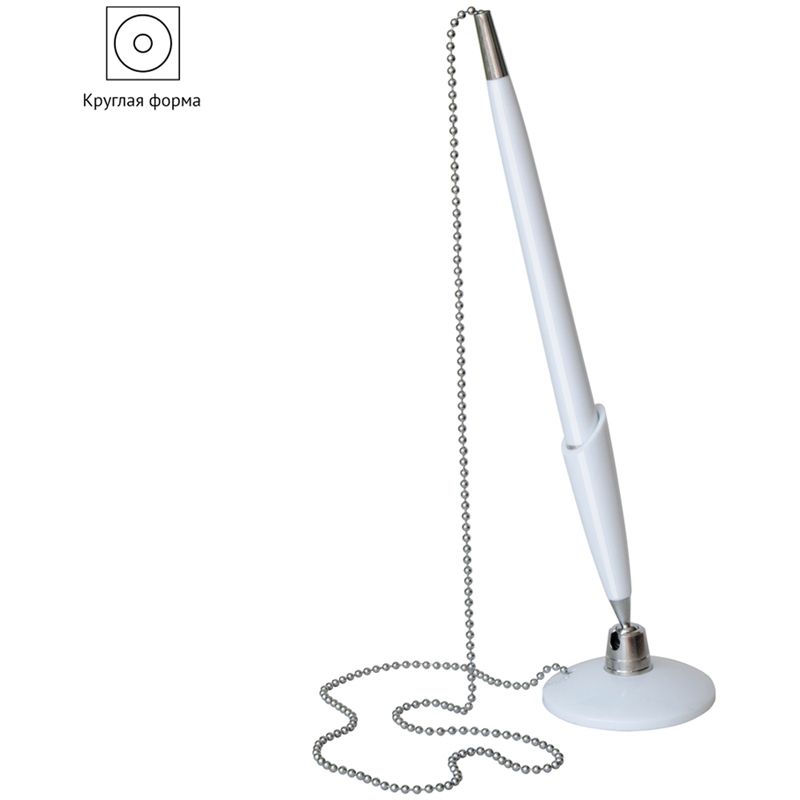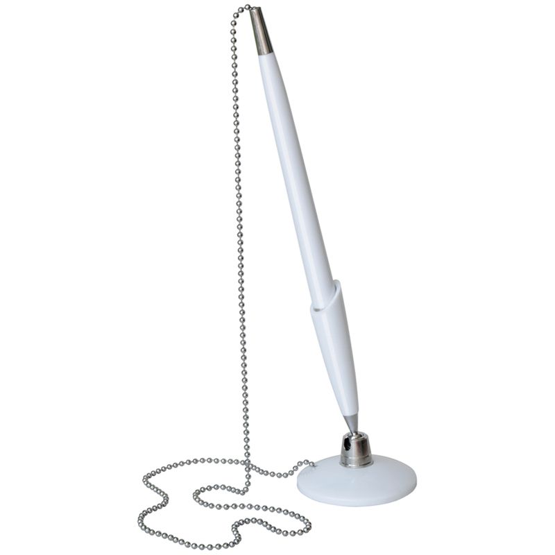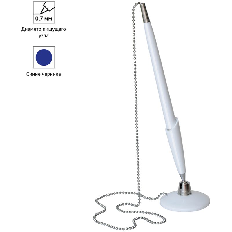 Ручка шариковая настольная OfficeSpace синяя, 0,7мм, белый корпусус, металлическая цепочка