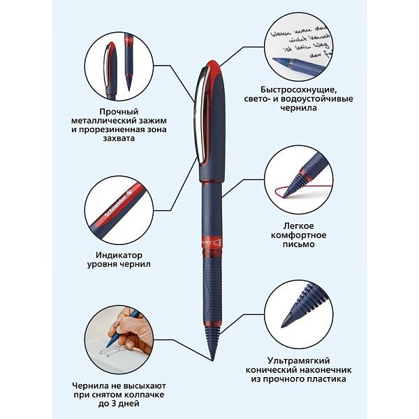 - Ручка-роллер SCHNEIDER "One Hybrid N", СИНЯЯ, корпус голубой, узел 0,7 мм — качественная модель от немецкого производителя, сочетающая современный дизайн и надёжность в использовании.