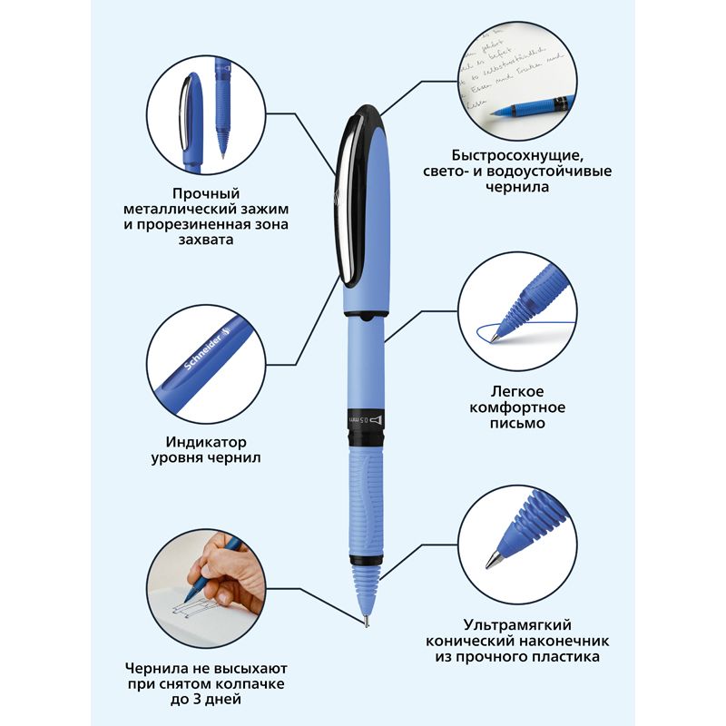 Ручка-роллер Schneider "One Hybrid C" синяя, 0,5мм, одноразовая