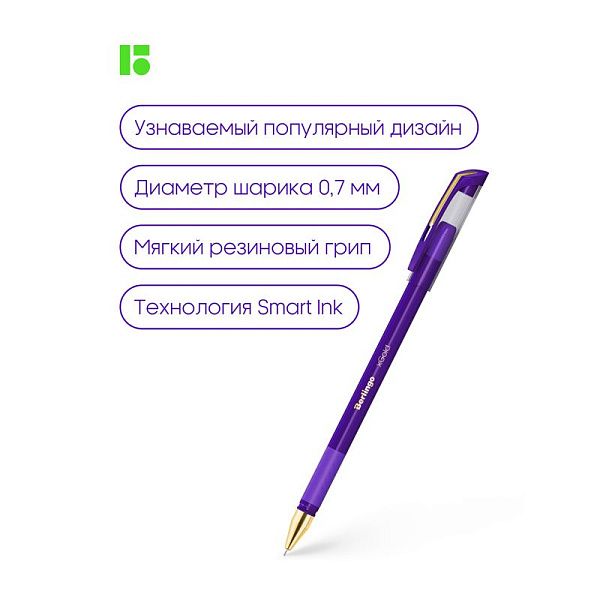 - Ручка шариковая Berlingo "Fluent" синяя, 0,7мм — изготовлена из прочного металлопласта и имеет покрытие soft-touch для комфортного хвата.