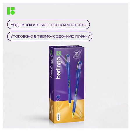 - Ручка шариковая Berlingo "Fluent" синяя, 0,7мм — изготовлена из прочного металлопласта и имеет покрытие soft-touch для комфортного хвата.