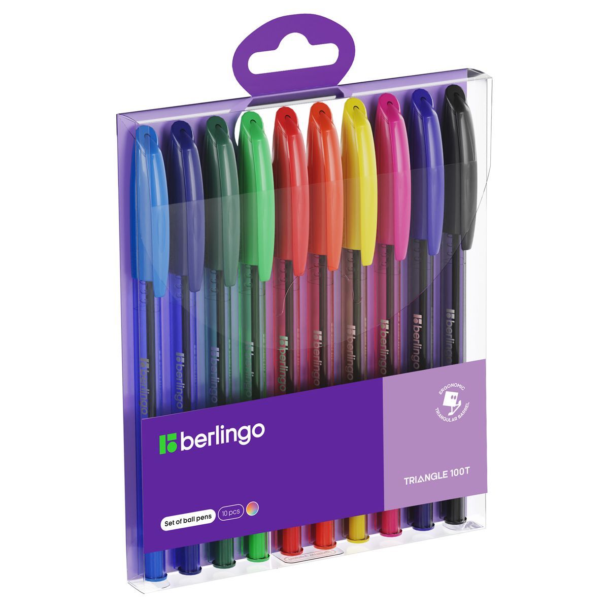 Набор шариковых ручек Berlingo "Triangle 100T" 10шт., 10цв., 0,7мм, корпус ассорти