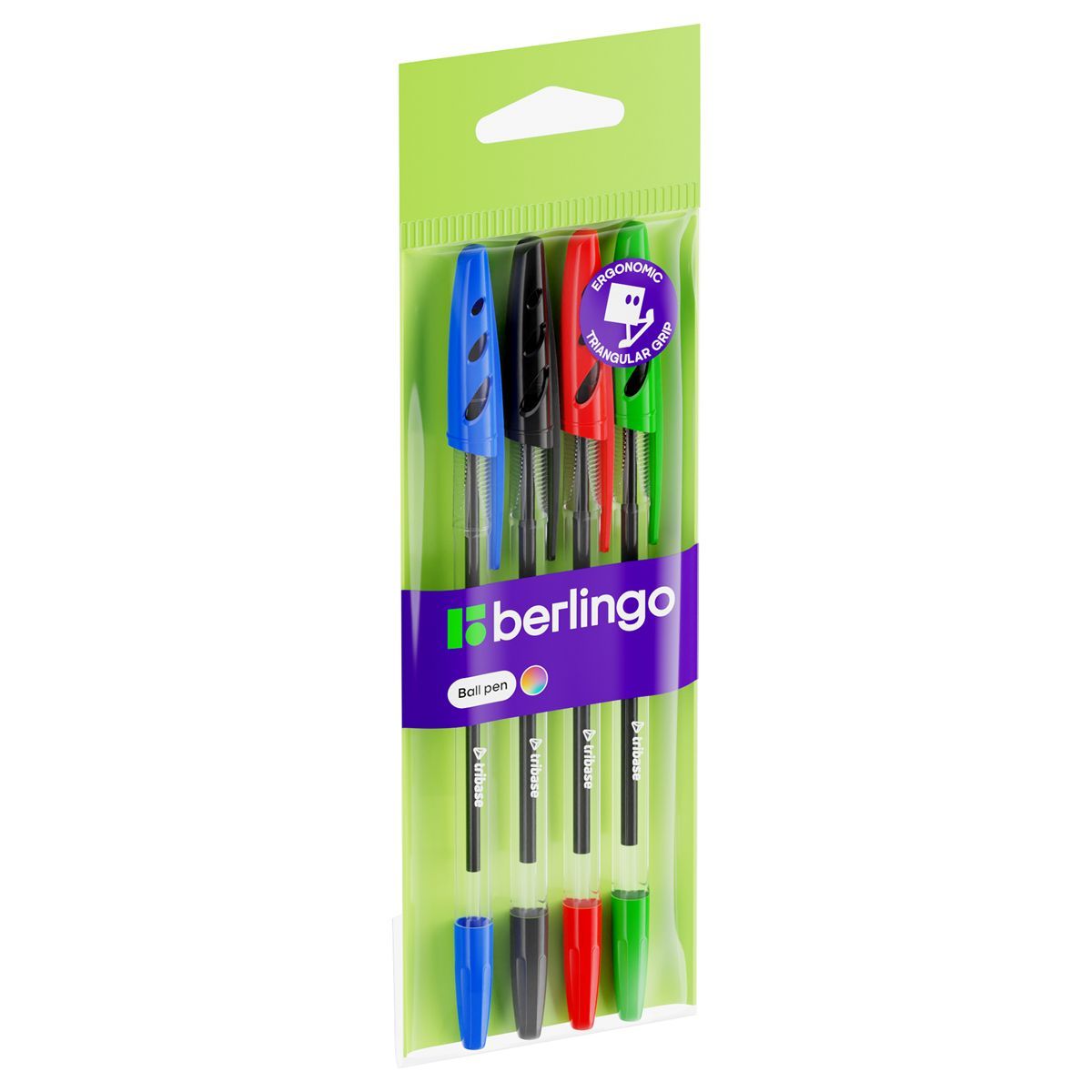 Набор шариковых ручек Berlingo "Tribase" 4шт., 4цв., 1мм, грип, европодвес