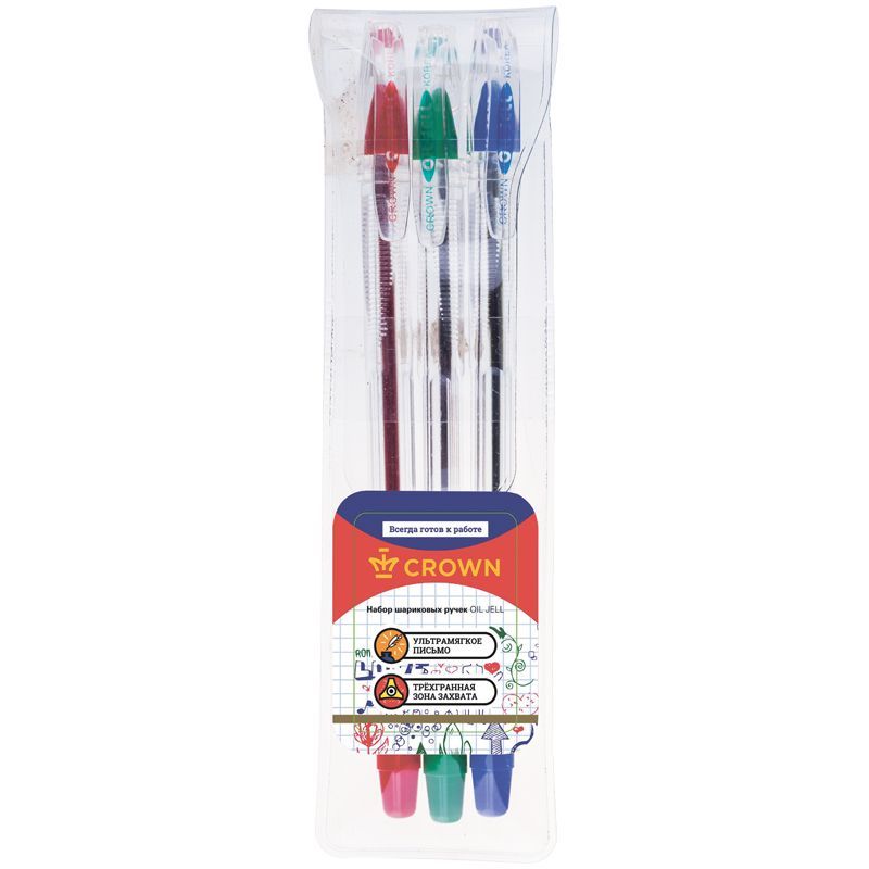 Набор шариковых ручек Crown "Oil Jell" 3шт., 03цв., 0,7мм, ПВХ уп., европодвес