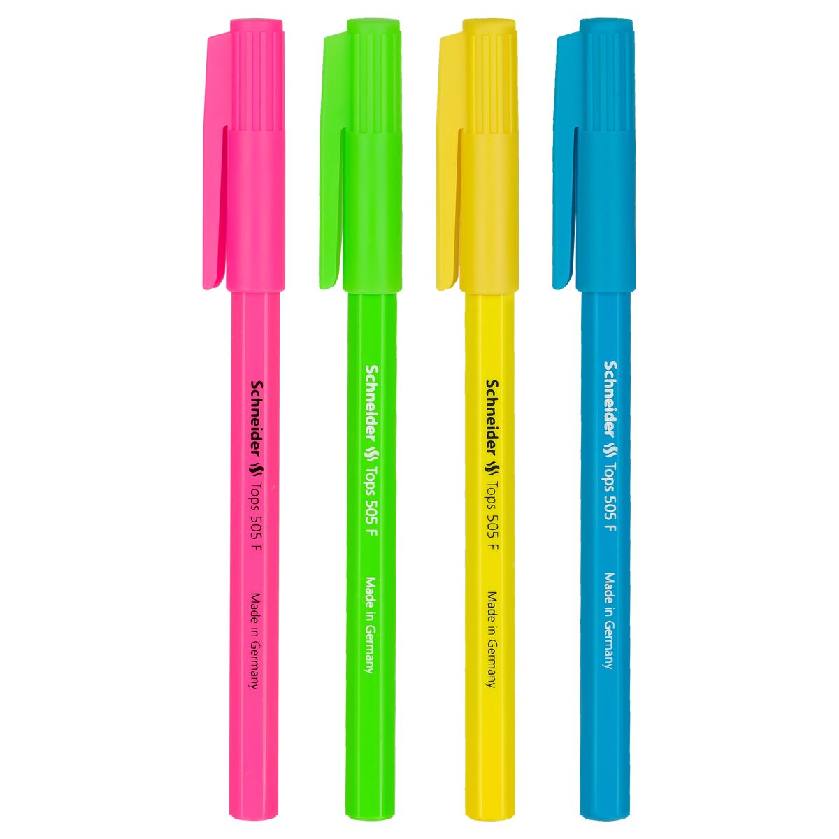 Набор шариковых ручек Schneider "Tops 505 F Candy" 4шт., синие, 0,8мм, корпус неон ассорти, блистер