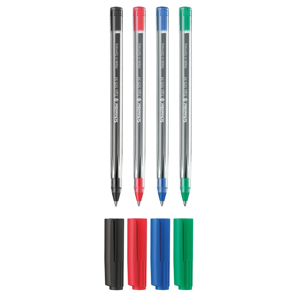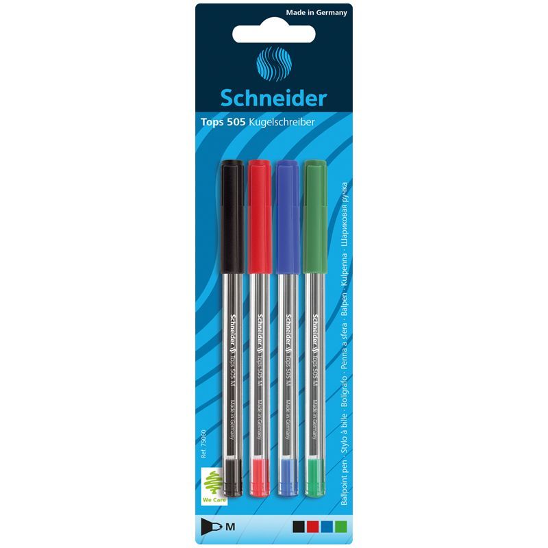Набор шариковых ручек Schneider "Tops 505 M" 4шт., ассорти, 1,0мм, прозрачный корпус, блистер