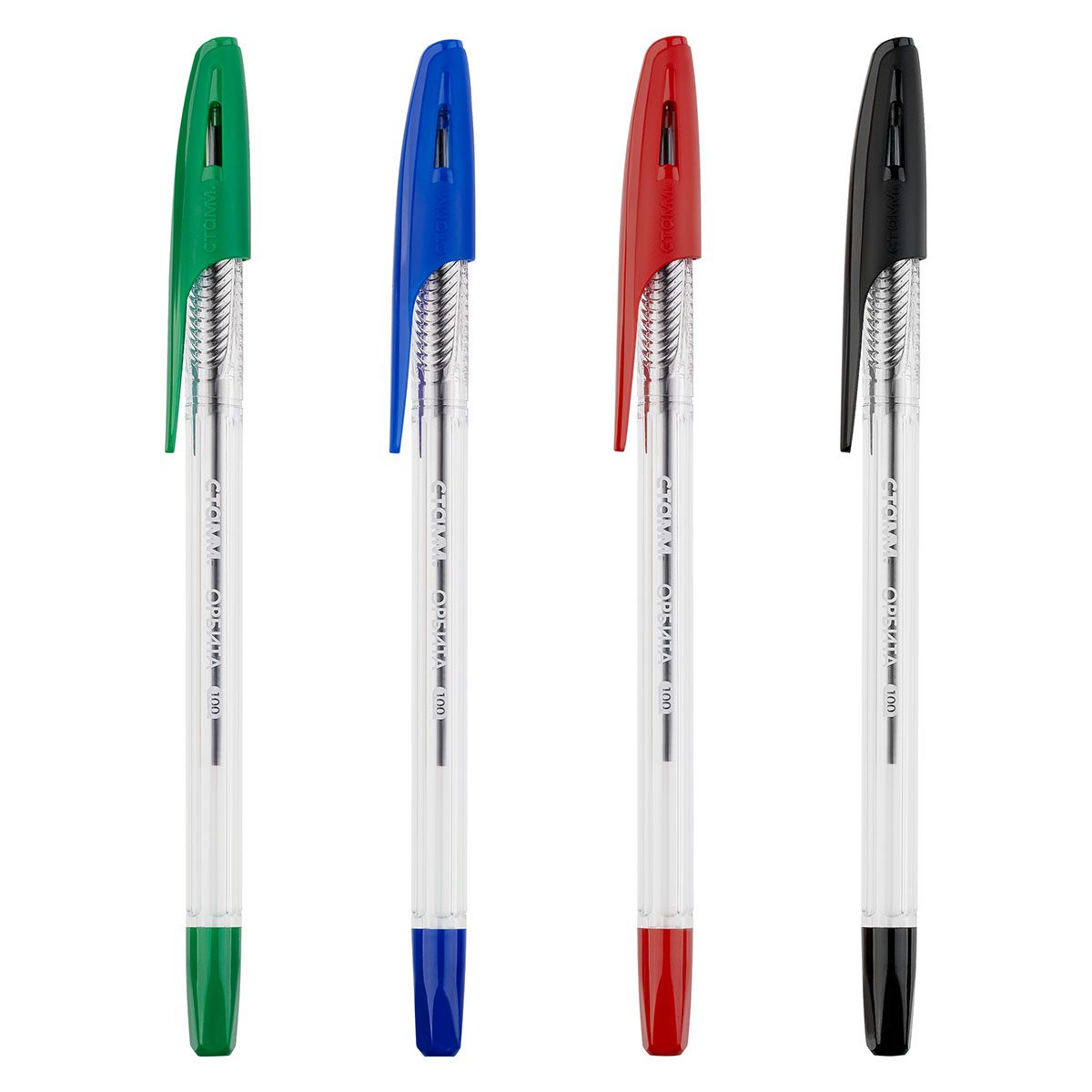 Набор шариковых ручек СТАММ "Орбита 100" 4шт., 4цв., 0,7мм, пакет с европодвесом