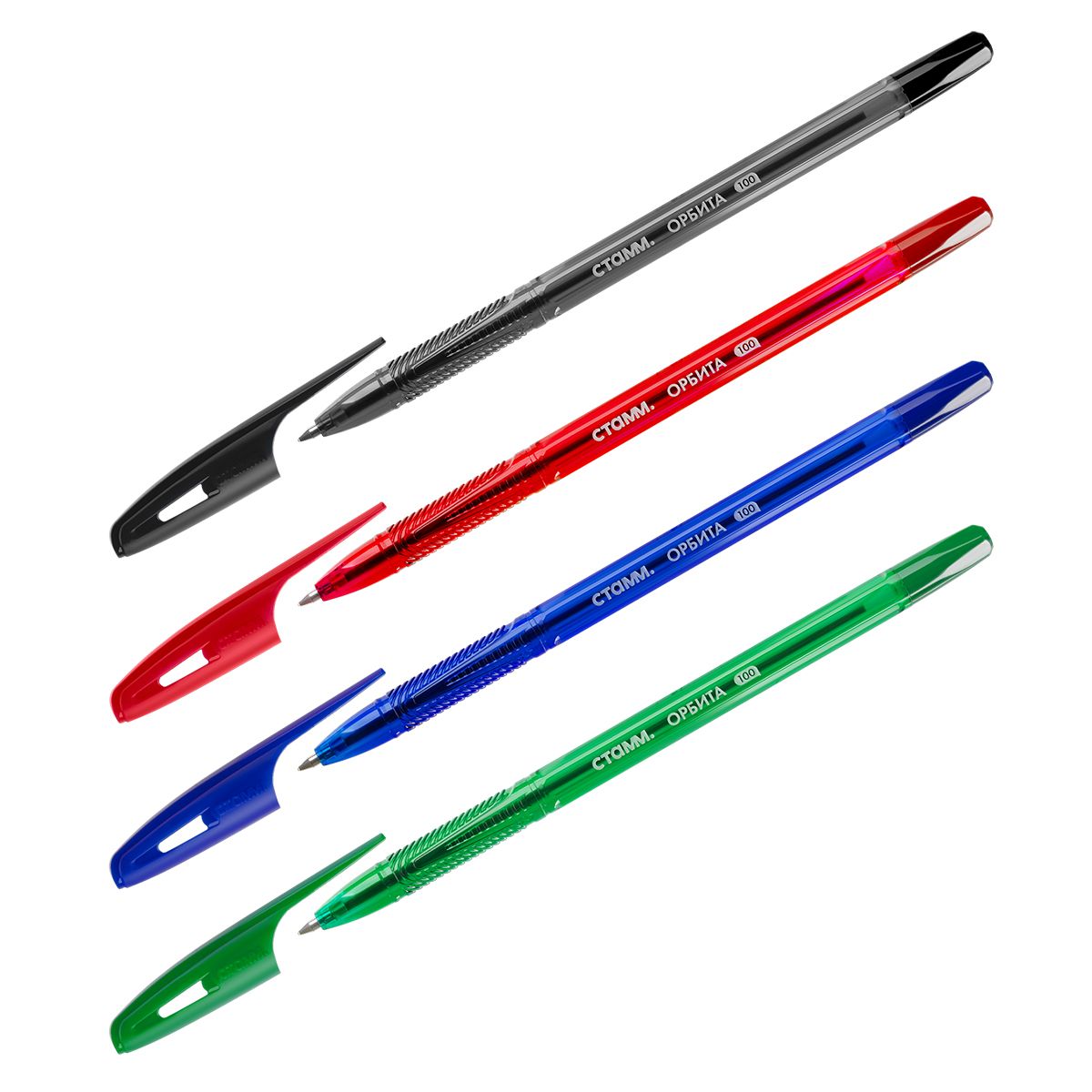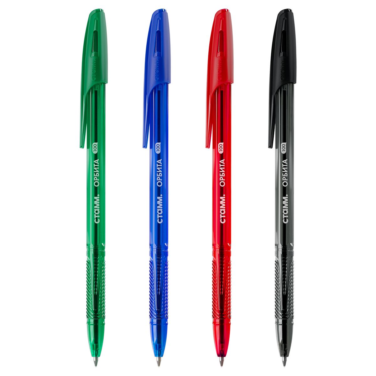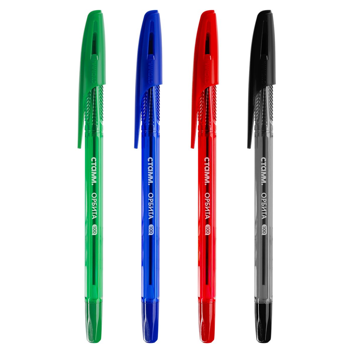 Набор шариковых ручек СТАММ «Орбита 100» 4шт., 4цв., 0,7мм, тонированный корпус, пакет с европодвесом