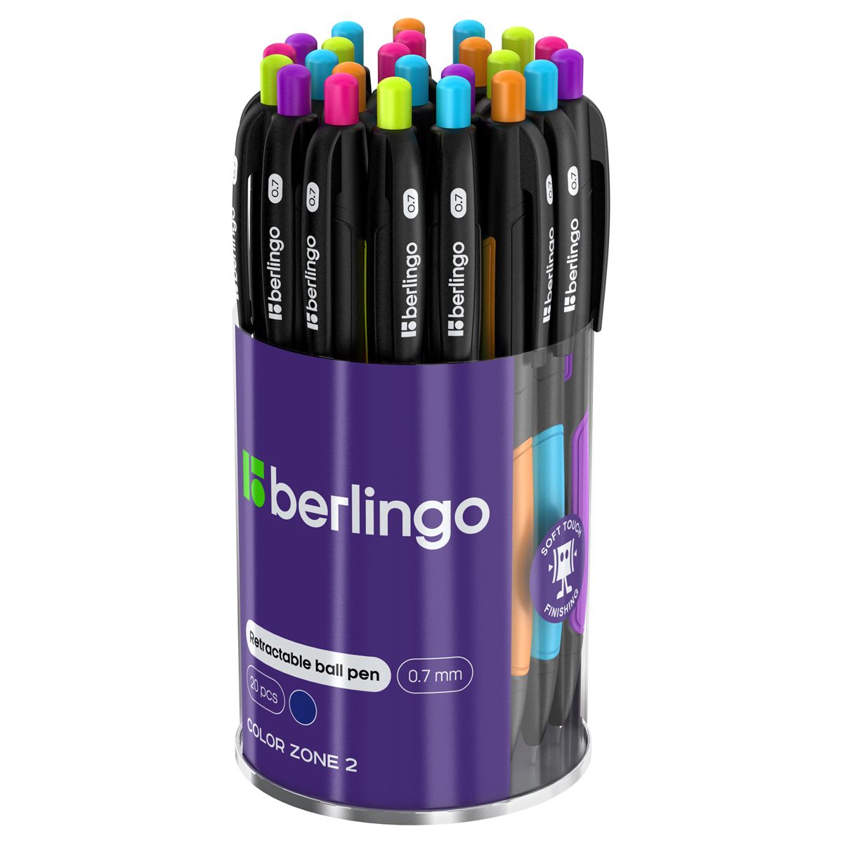 Ручка шариковая автоматическая Berlingo "Color Zone 2" синяя, 0,7мм, корпус ассорти
