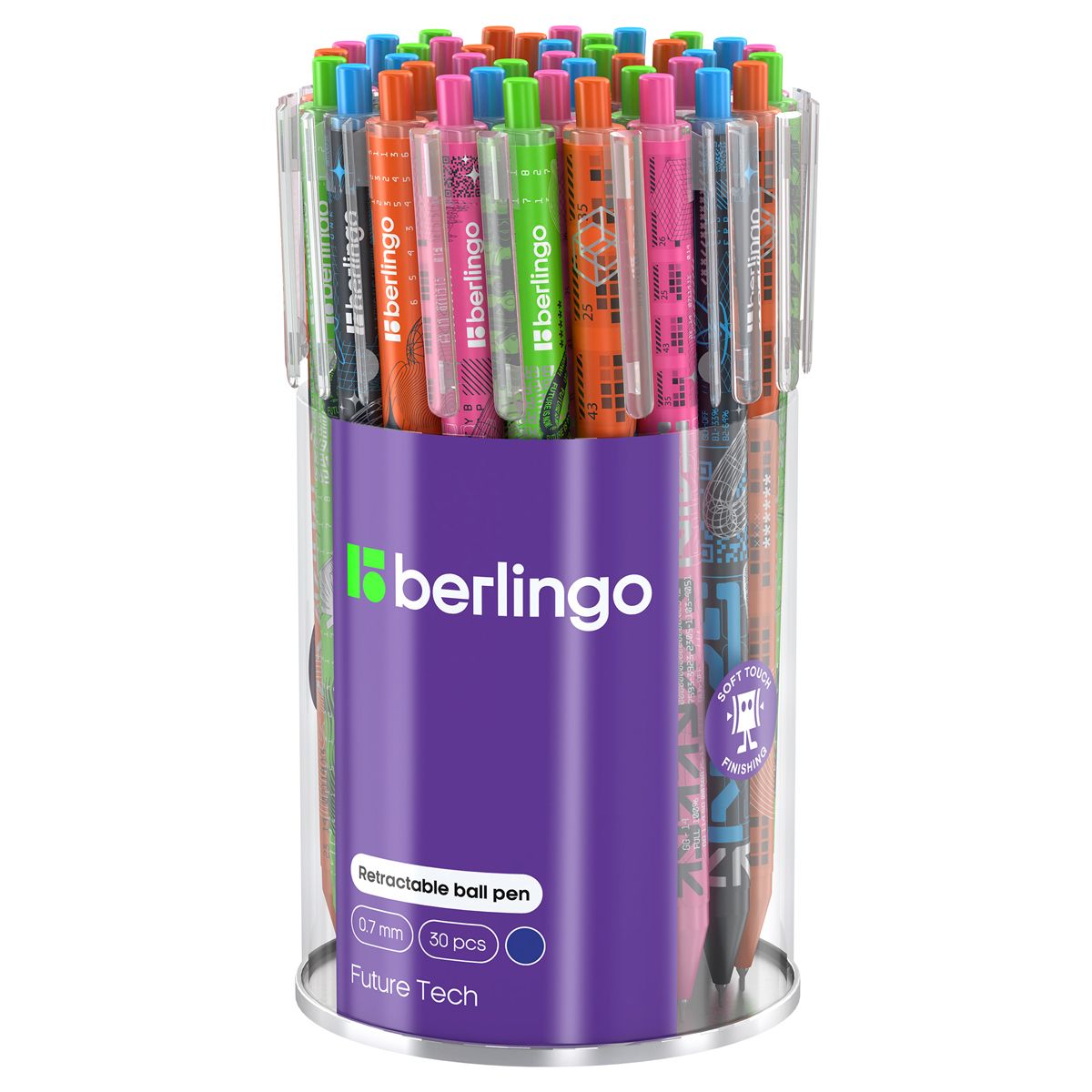 Ручка шариковая автоматическая Berlingo "Future Tech" синяя, 0,7мм, рисунок на корпусе, soft touch, ассорти